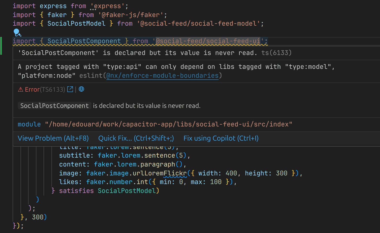 ];Here’s an example of the rule failing in my editor when importing a UI element in the backend API: