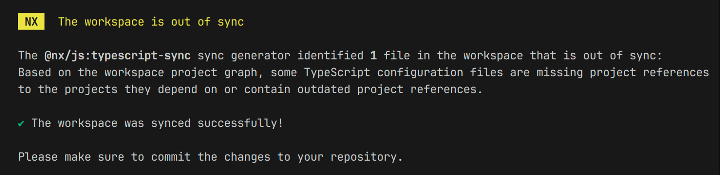 While project references offer benefits, manually maintaining them in tsconfig files can be cumbersome. Nx provides the nx sync command: